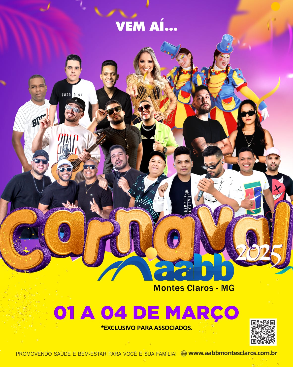 Vista-se de alegria e venha fazer parte desta grande festa, preparada exclusivamente para você! Carnaval da AABB 2025 – De 01 a 04 de março. Não perca por nada!