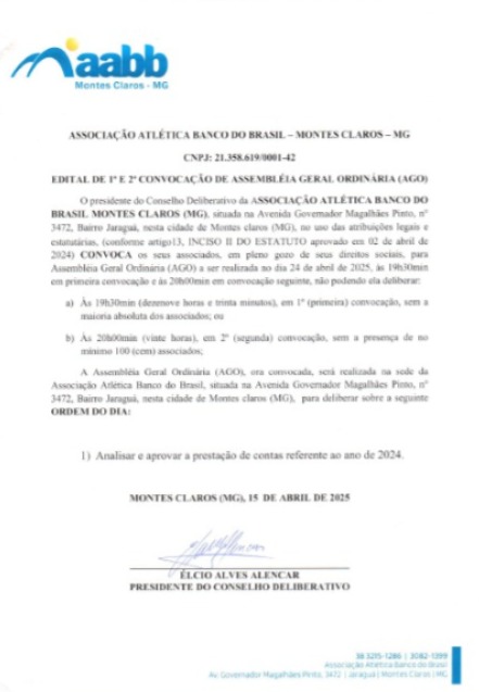 EDITAL DE 1° E 2° CONVOCAÇÃO DE ASSEMBLÉIA GERAL ORDINÁRIA (AGO)