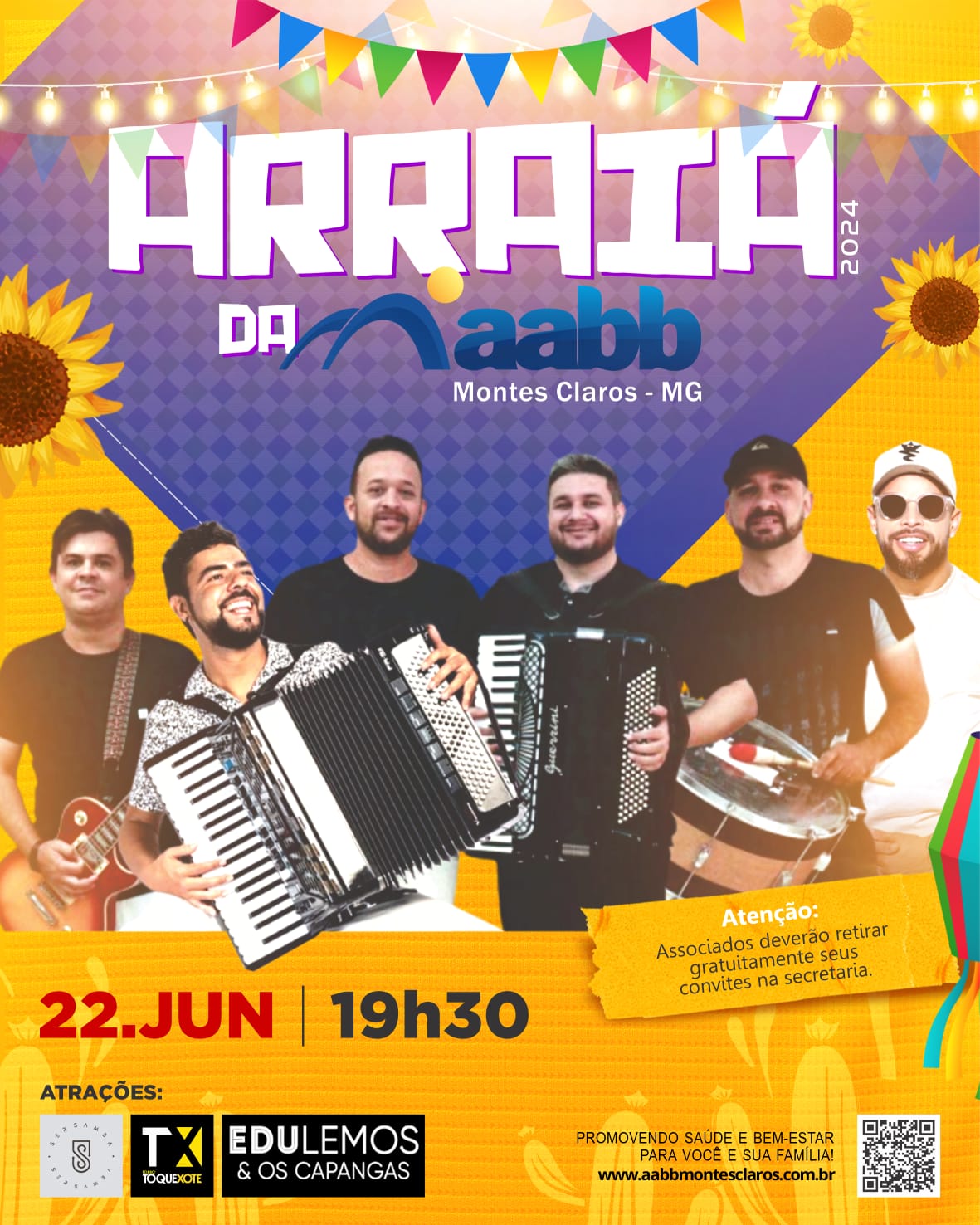 Prepare o seu traje! Vem aí uma das festas mais esperadas do ano – Arraiá da AABB 2024. Muita música, dança, comidas típicas e diversão para toda a família! E mais, o Grupo de Forró da AABB com a sua maravilhosa quadrilha, será puxada no início da primeira banda, às 20h30. Se apronte que vai sê um trem bão demais!!